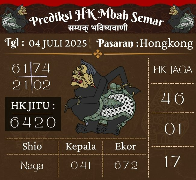 Prediksi HK Mbah Semar Hari Ini, 04 JULI 2025