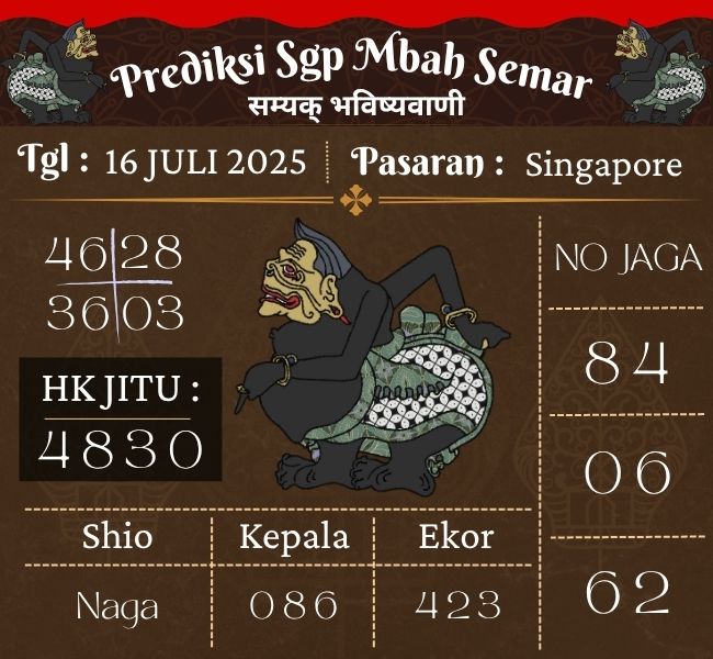 Prediksi SGP Mbah Semar Hari Ini,16 JULI 2025