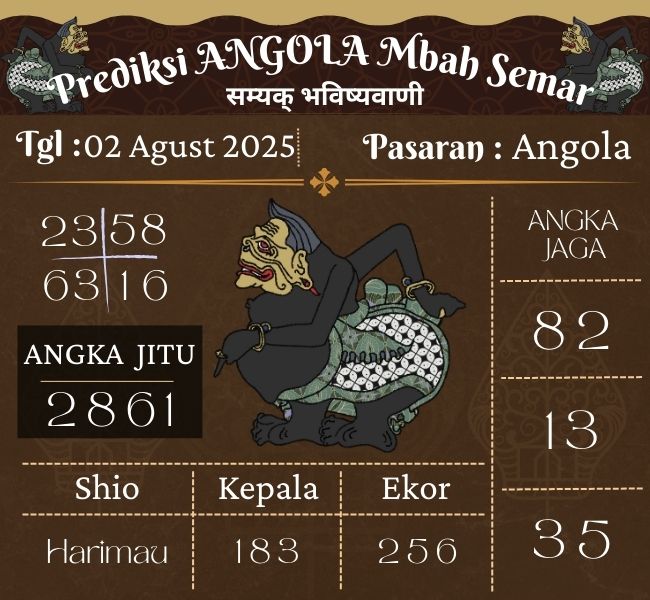 Prediksi Angola Mbah Semar Hari Ini 02 Agustus 2025 Jitu Akurat