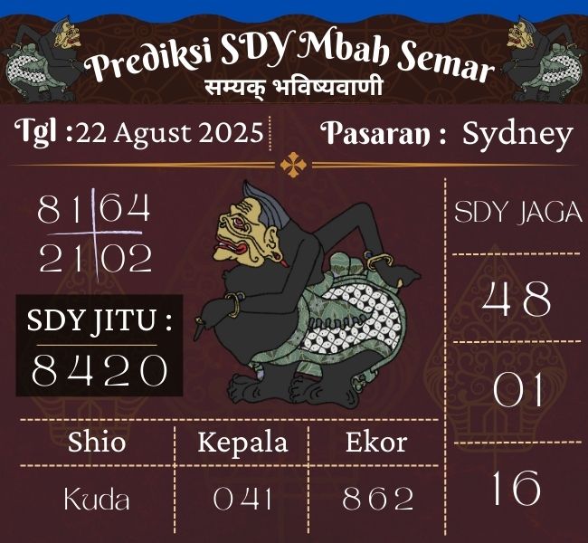 Prediksi Togel Sidney Mbah Semar Hari Ini 22 Agustus 2025 Jitu Akurat
