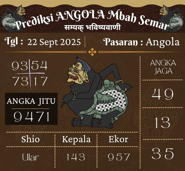 Prediksi Angola Mbah Semar Hari Ini,22 SEPTEMBER 2025