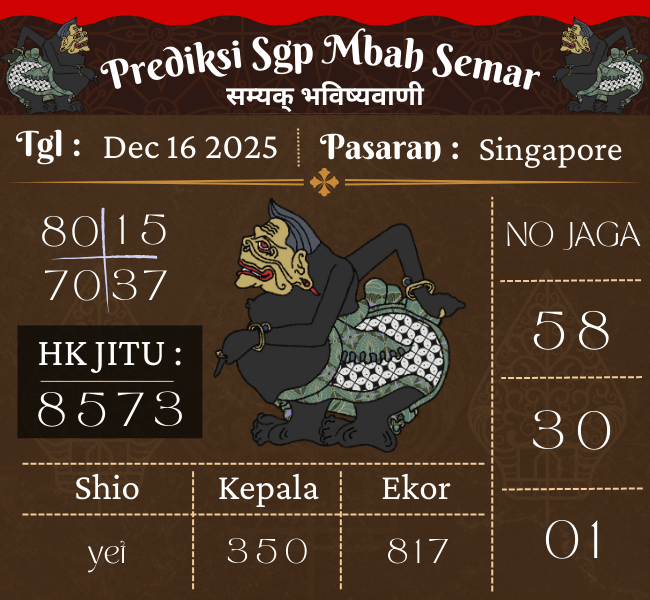 Prediksi SGP Mbah Semar Hari Ini,16 December 2025