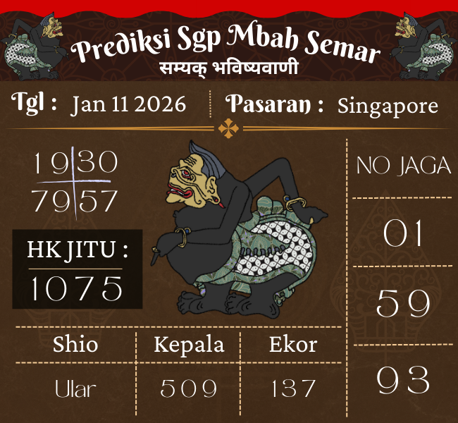 Prediksi SGP Mbah Semar Hari Ini,11 Januari 2026