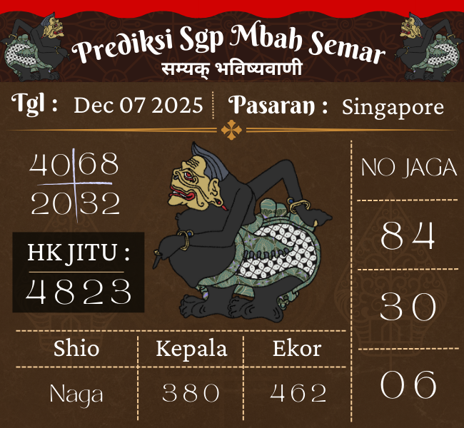 Prediksi SGP Mbah Semar Hari Ini,07 December 2025